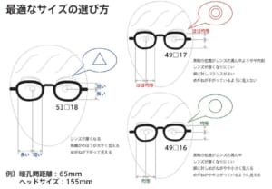 人それぞれ「瞳孔間の距離」「ヘッドサイズ」などが異なりますので先ずは自身の「瞳孔間の距離」「ヘッドサイズ」を確認してからめがね選びを始めること。