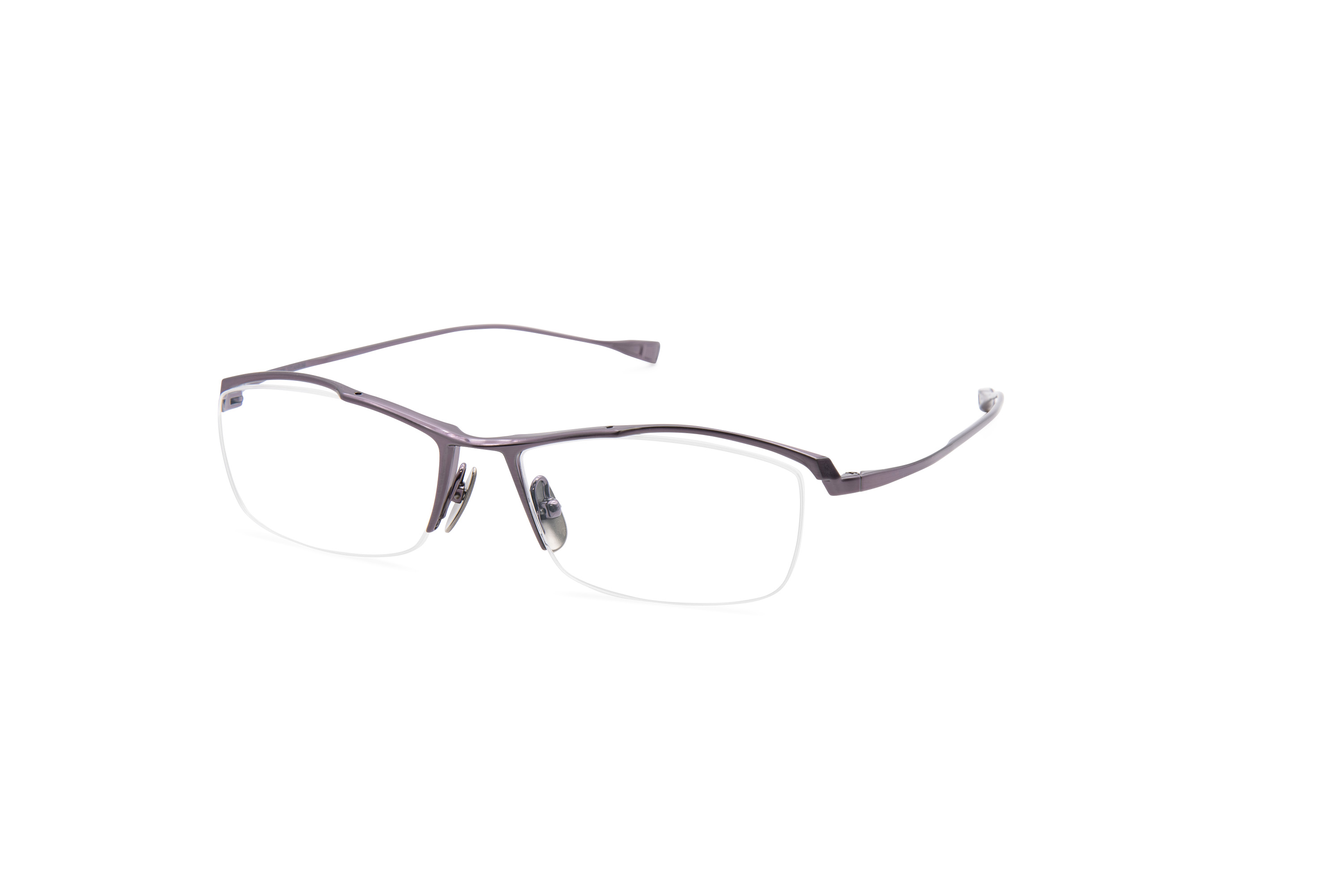 立体的なフォルムに知性と品格を兼ね備えたJN-673の進化版は新色の全5色展開です。パッドは特殊なブラスト加工を施した汗でも滑りにくいマイクロチタンパッドを採用しました。Col.01はタチタン無垢の素材感を活かしたヘアライン加工で洗練されたミニマリズムを表現。Col.02はヘアライン加工を施した後に金メッキを施すことで上品なゴールドに仕上げました。Col.03は知的な印象を一層引き立てる深みのあるネイビー。Col.04はグレーをベースにパープルを馴染ませた洗練されたカラーリング。Col.05はシルバーベースに手作業でブラックカラーを塗り染み込ませる特殊技法により、独自のツートンカラーを実現しました。知的な印象を際立たせながら、最適な掛け心地を追求したこのモデルは、まさに現代のビジネスシーンにふさわしい一本です。