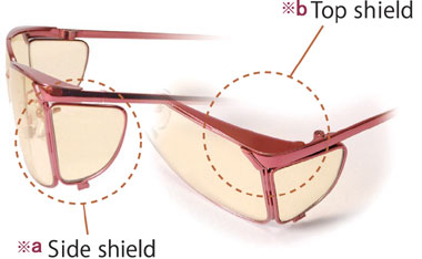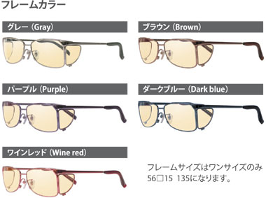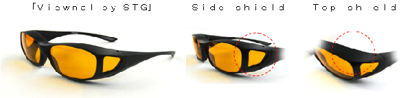 | Viewnal by STG(ビューナル) | ブラックのみ | 12色(LY / YL / OY / RO / YG / UG / BR / FL / TR / NL / FR / MG) | 普段お使いのメガネの上から掛けることができる「オーバーグラス」タイプ。 テンプル横の部分にも正面レンズと同じカラーレンズをはめ込み、 側面の視界を保ちながら、横から進入するまぶしさもカット。 さらにフレーム上部には厚みを持たせ、上方から入り込む光を遮断。 | ¥21,000- (1年保証付) |