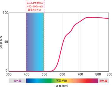 まぶしさ、ぎらつきの原因となる波長光を遮光レンズがカットします。
