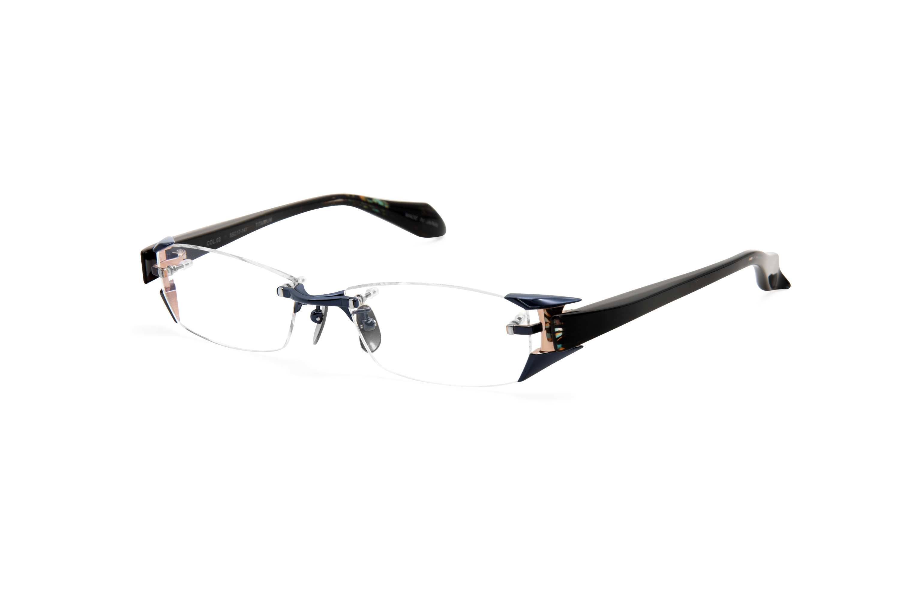 不動のロングセラーJN-510が進化を遂げ新色をリリース。立体感が特徴のツーポイントモデルです。鼻パッドに特殊なブラスト加工を施したマイクロチタンパッドを採用しており、優れたグリップ力によって眼鏡のずり下がりを軽減し、安定した掛け心地を実現。Col.01はテンプルにマツケリ社で特別に起こしたオリジナルブルースパイダー生地を採用し、神秘的な表情を演出。Col.02,03のフロントには熟練の職人が手塗りで色を染み込ませた特殊なツートンカラーを施し、さらにテンプル内外で異なる生地を貼り合わせることで深みのあるデザインに仕上げました。Col.04は「透明感」をテーマにしたクリアなホワイトカラーで、洗練された印象を与えます。Col.05は、ヨロイのブラックとブリッジのゴールドが織りなすツーポイントならではのカラーコンビネーションが個性を際立たせます。