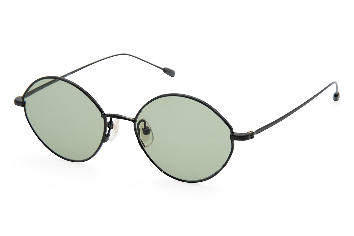 貝殻をイメージしたレンズシェイプのフルメタルフレーム。断面がひし型形状のエッジあるリム線を使用し、ダブルカラーになるように外周だけを手染めした2色(Col.01、Col.03)と、レンズシェイプをシンプルに楽しむシングルカラーで展開しています。テンプルエンドのセラミックパールはバランサーとしての役割も。