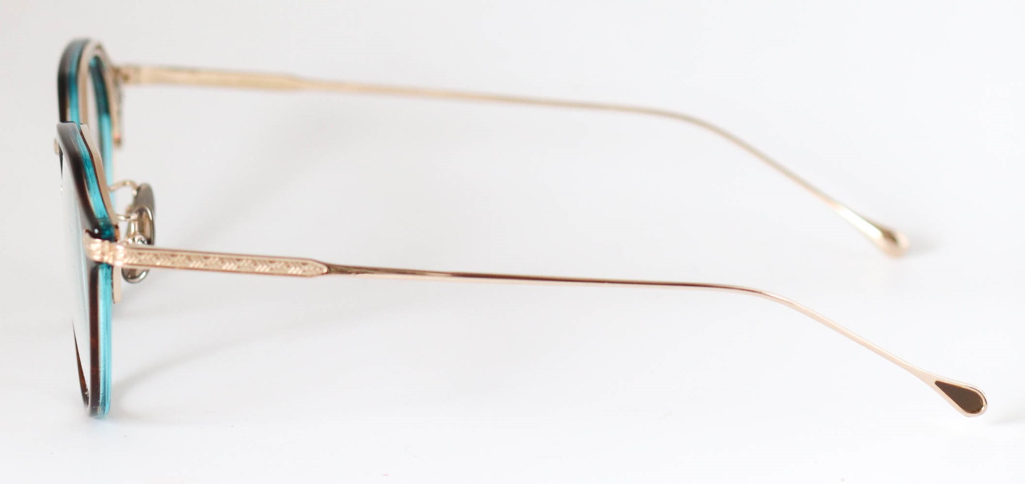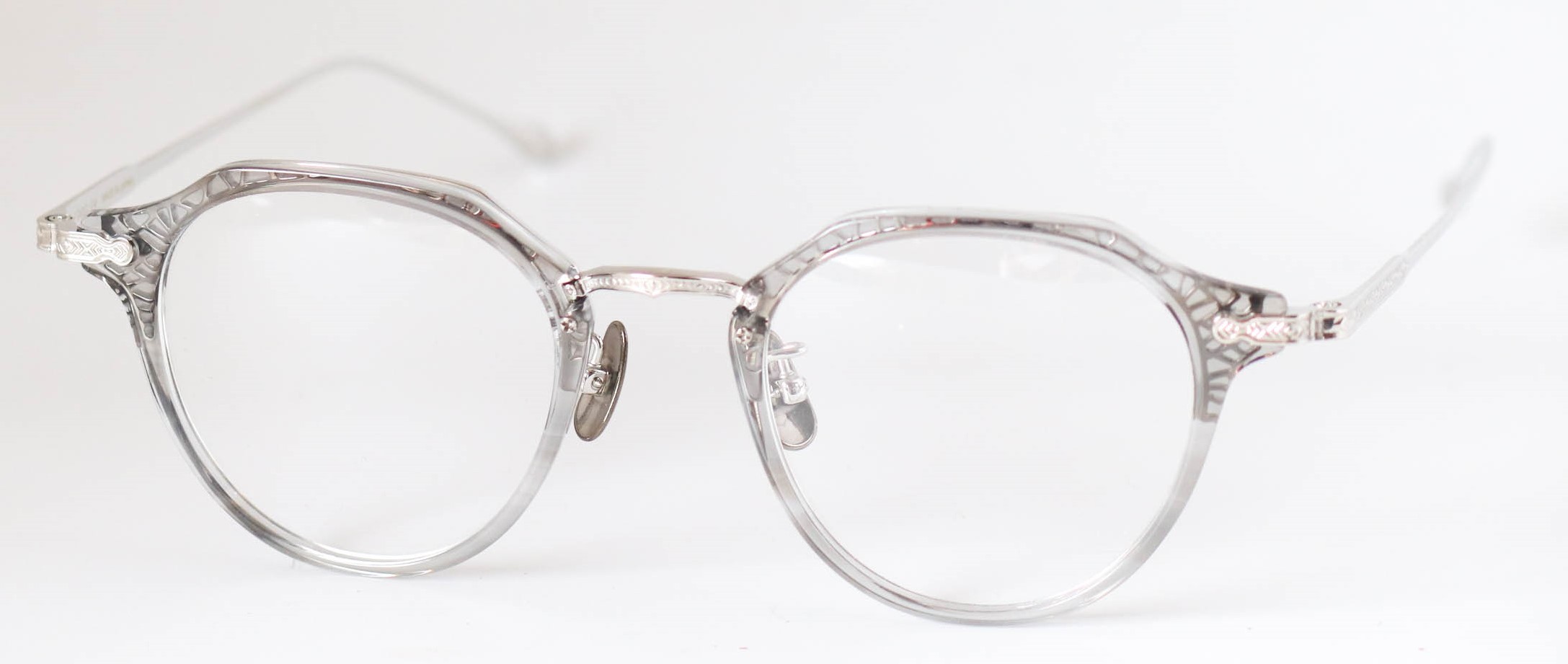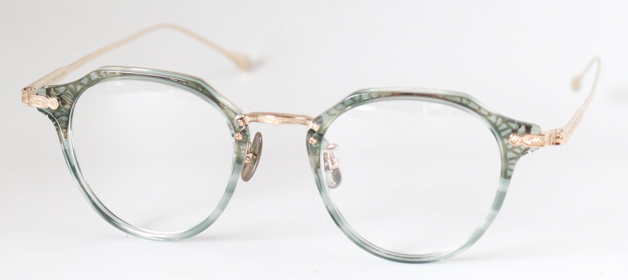 多層の綺麗なアセテートを基本に、削り出しの技術で鮮やかに魅せる独創的なつくりが魅力です。掛け心地も軽く、ノーズパットもチタン製でこだわりを感じさせてくれるモデルとなっている