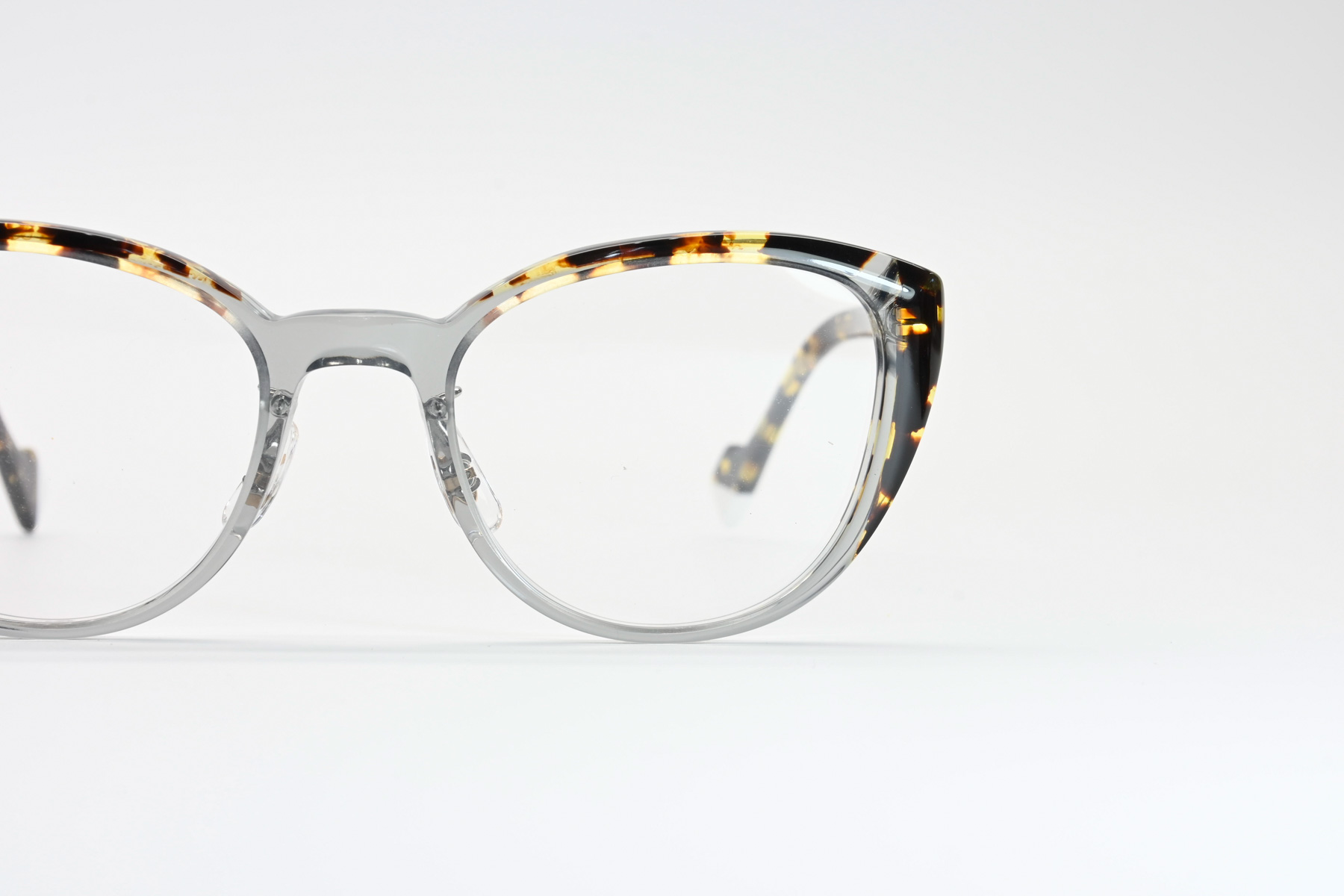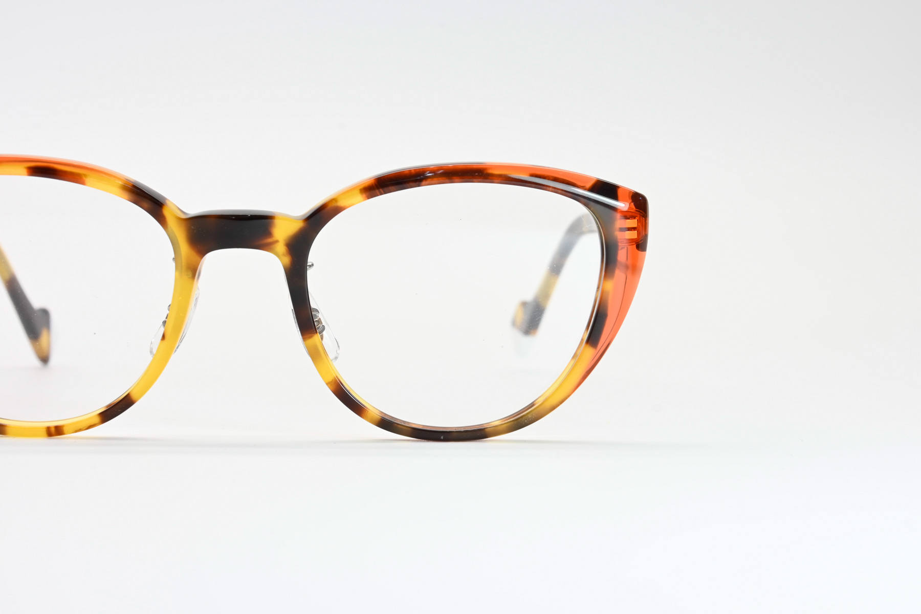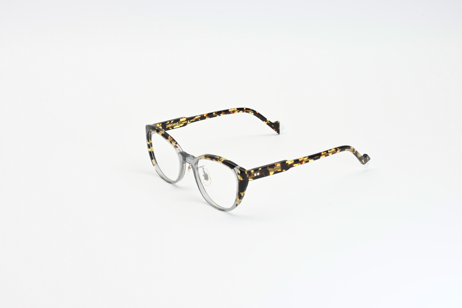 プラスジャックの新ブランド「PERCENT」。鮮やかなアセテート生地をパズル状に貼あわせ、現代的なカジュアルカラーに仕上げクラシックフレームの落ち着いたカラーとは一線を画すファッションフレーム